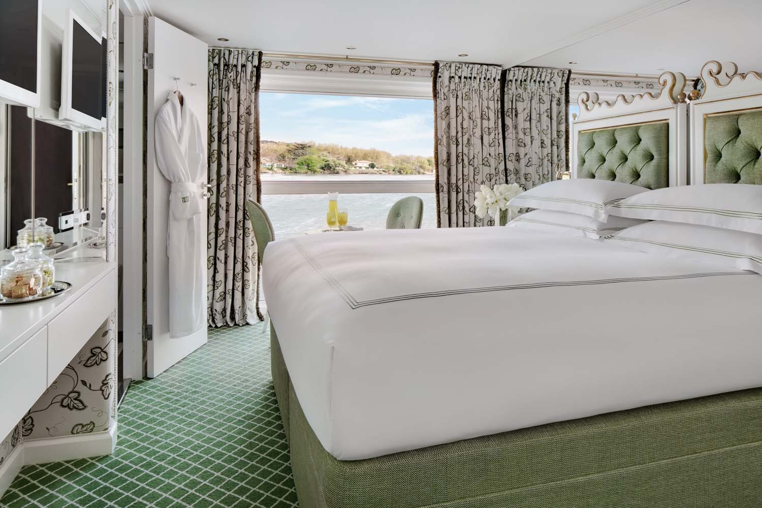 Category 2 & 3 staterooms feature French balconies, and have handcrafted Savoir® of England beds, 100% Egyptian cotton linens, and a choice of pillows. Other amenities include built-in closets, hair dryer, individual thermostat, flat-screen TV with infotainment centre and satellite, bottled water, and a safe. Marble bathrooms feature L’Occitane en Provence bath and body products, plush towels, towel warmers, heated mirrors, and bathrobes and slippers.